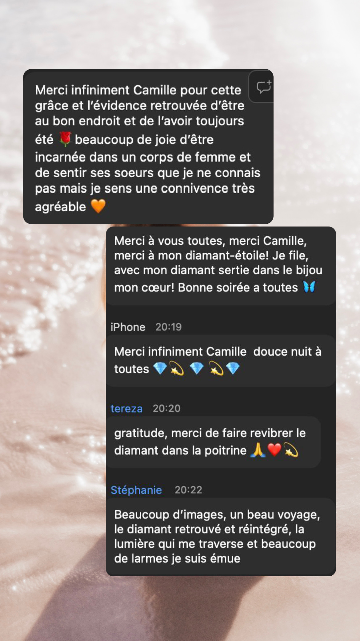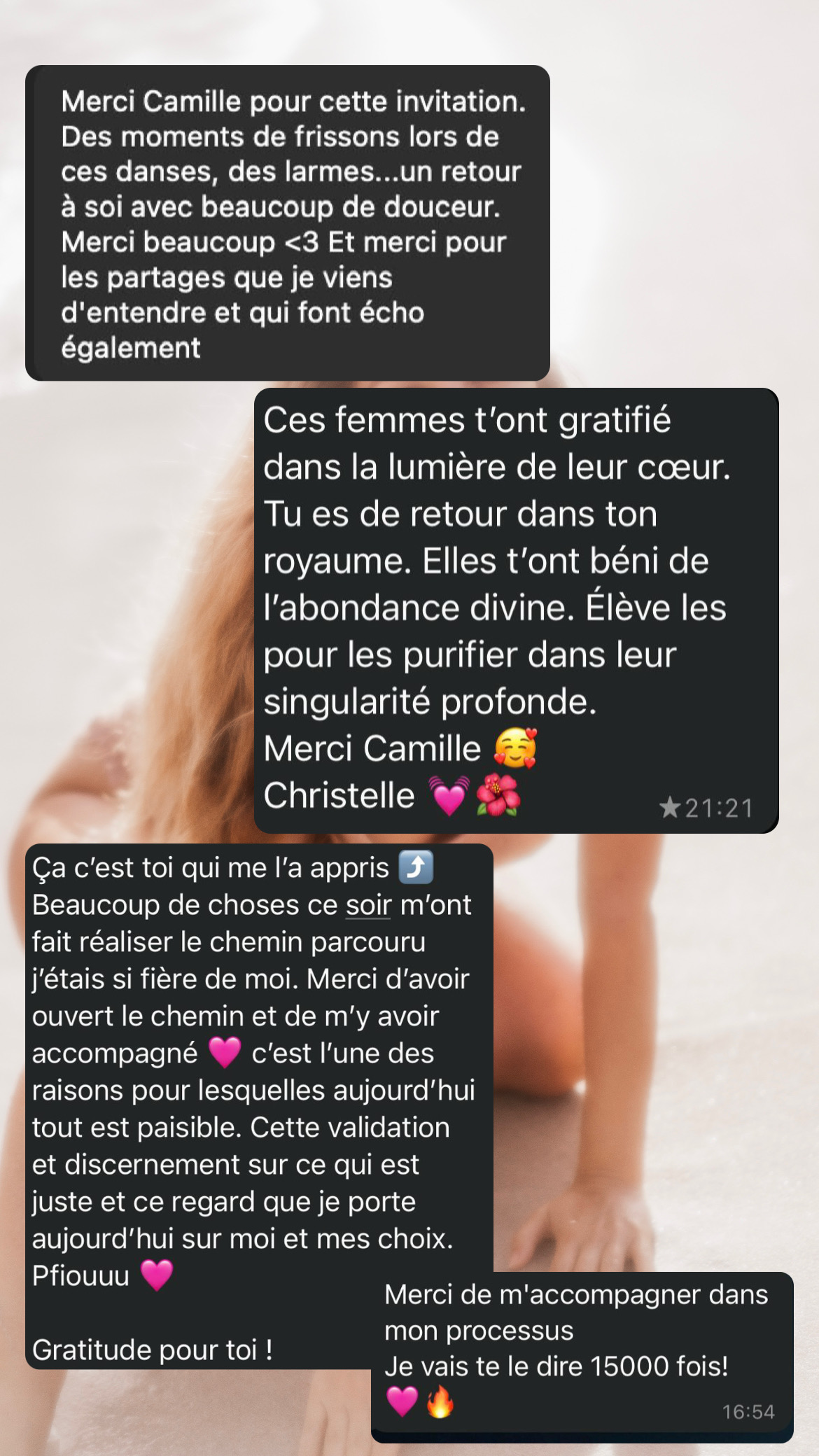 Camille guide des ateliers auprès de centaines de femmes, en ligne et en retraite, à Ibiza, en Grèce, en Egypte.