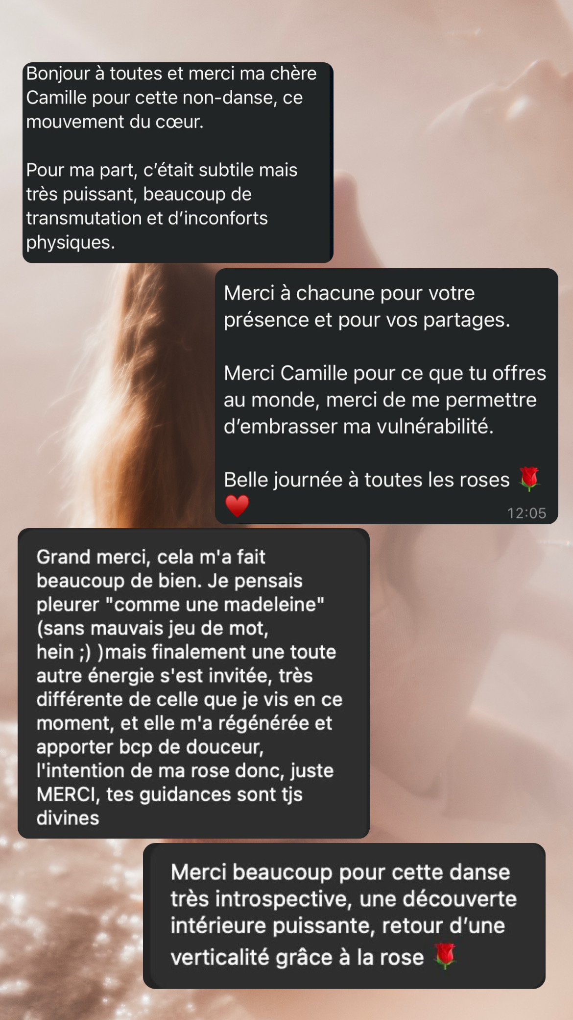 Module 3 : Incarner les codes de la Rose dans ton corps avec la Danse de la Rose guidée par Camille "Retour à la Grâce" (enregistrée et guidée par Camille le 5 septembre 2024)